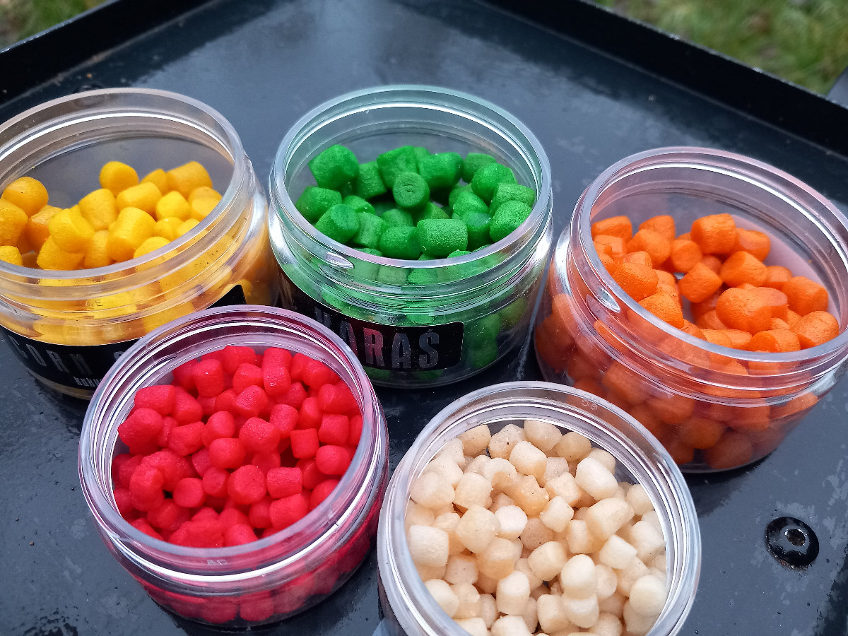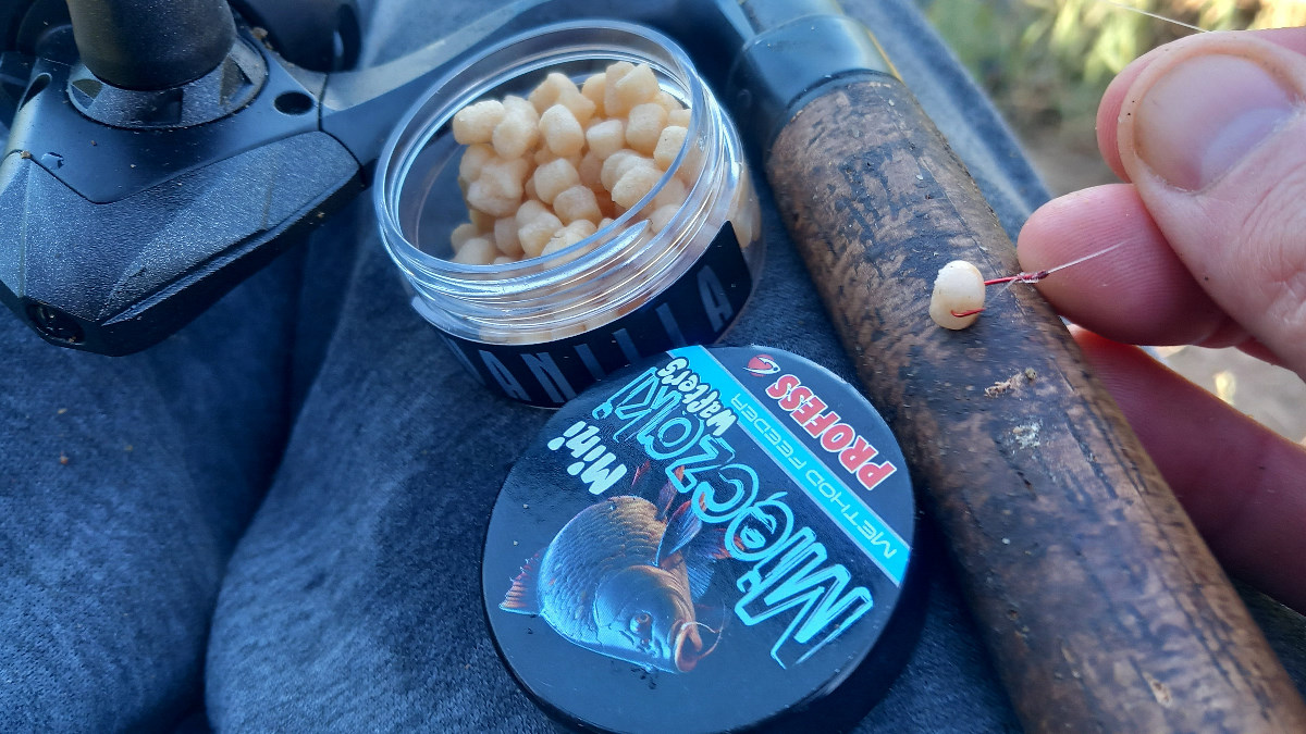 W moje ręce trafiły dwie wielkości standardowe 8 mm i w wersji mini 4 x 7 mm. Te drugie powinny się sprawdzić, gdy ryby gorzej żerują i niechętnie pobierają duże przynęty. Będą też świetne na mniejsze ryby; leszczyki, karasie i liny.